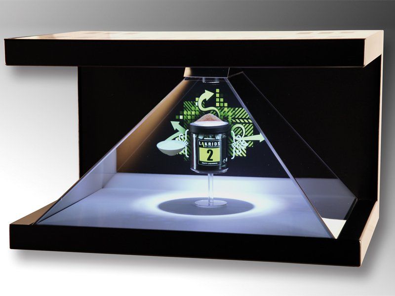 Our holographic boxes are designed on the same principle as the head-up vision of airplanes or modern vehicles.
