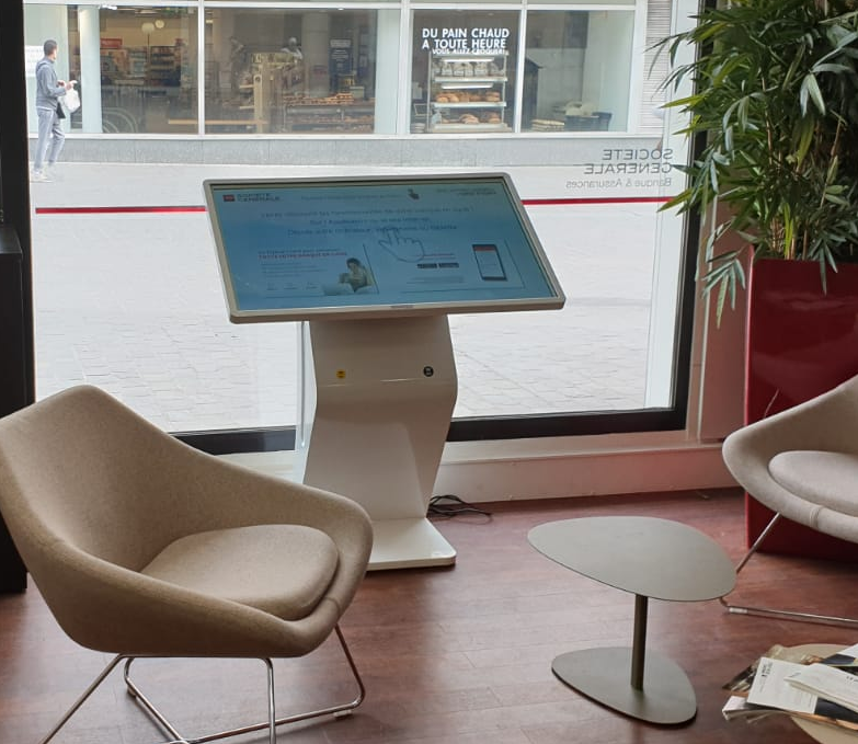 Es un escritorio de diseño contemporáneo, diseñado en metal pintado con una pantalla táctil de 42/43 pulgadasprotegido por una placa de vidrio templado.